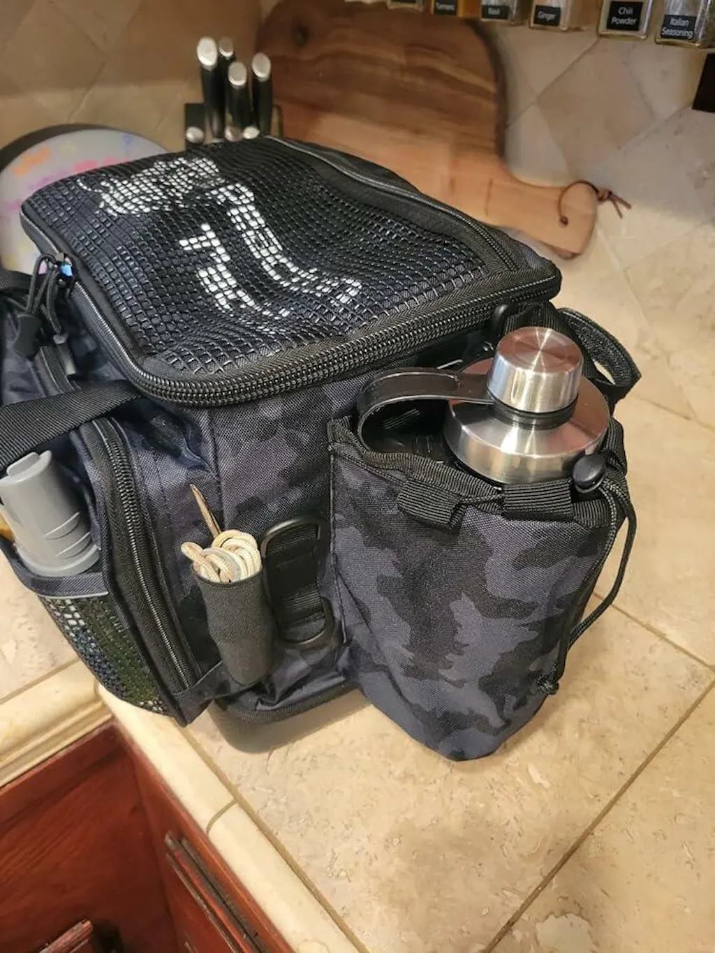 - ANGELGERÄTETASCHE/TARNUNG – Enthält Halterungen für eine Wasserflasche, eine Angelrute und einfachen Zugang für Zangen. Mit unserer Angelgerätetasche haben Sie eine praktische Aufbewahrungslösung für alle Ihre Angelbedürfnisse.
